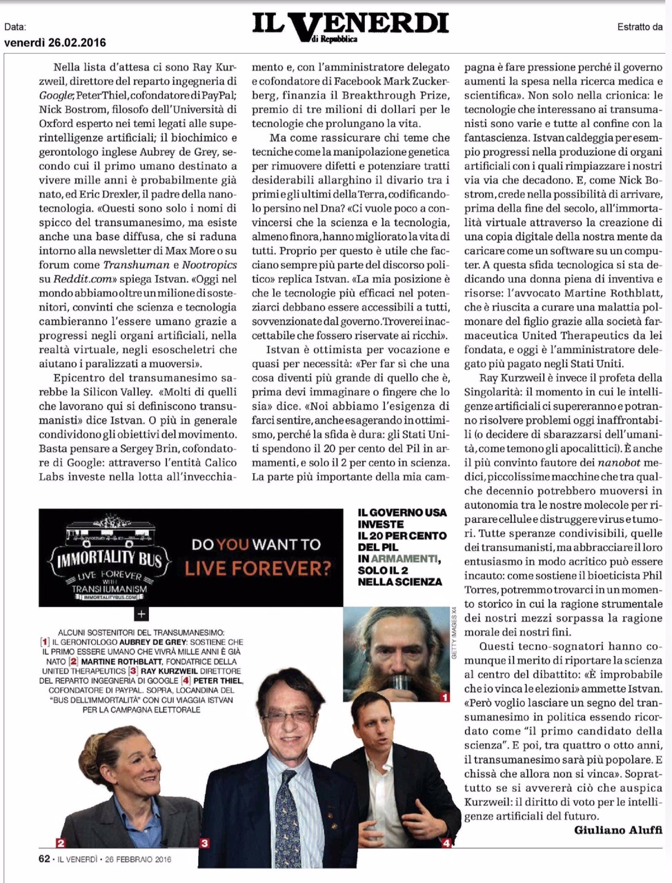 Zoltan Istvan intervistato da Repubblica (Magazine Il Venerdì del 26 2 2016)